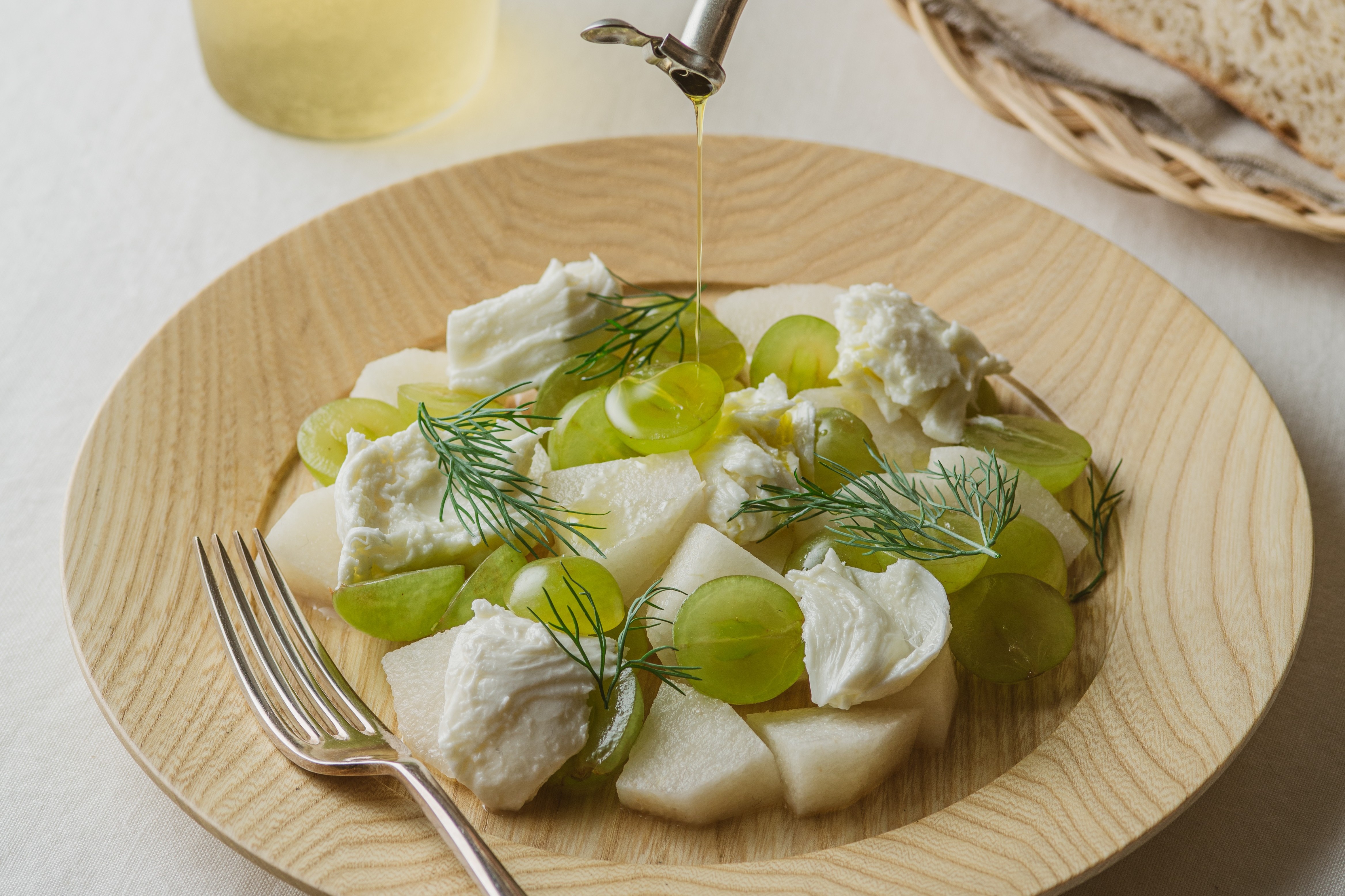 ブドウや梨に、モッツァレラや生ハムを合わせたカプレーゼは、